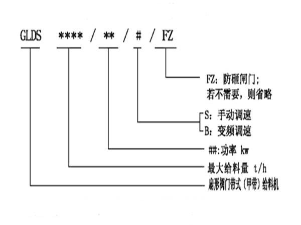 扇形閥門帶式(甲帶)給料機(jī)型號說明: